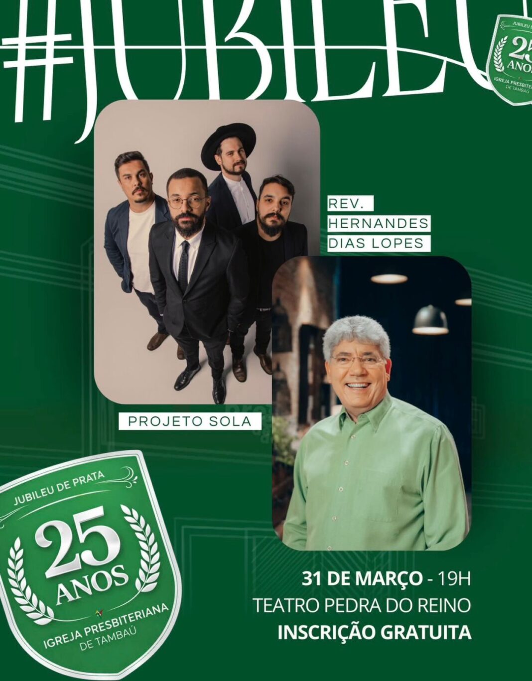 A celebração contará com a participação especial do Projeto Sola, um dos principais nomes da música cristã contemporânea do mundo e do Rev. Hernandes Dias Lopes, reconhecido internacionalmente por sua atuação pastoral como uma das principais referências da teologia cristã protestante no país.