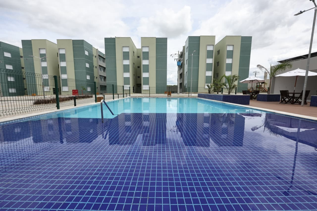 O residencial entregue possui 128 apartamentos de 56 m² com dois quartos, suíte, sala, cozinha e área de serviço e uma ampla área de lazer com piscina, espaço gourmet e estacionamento.