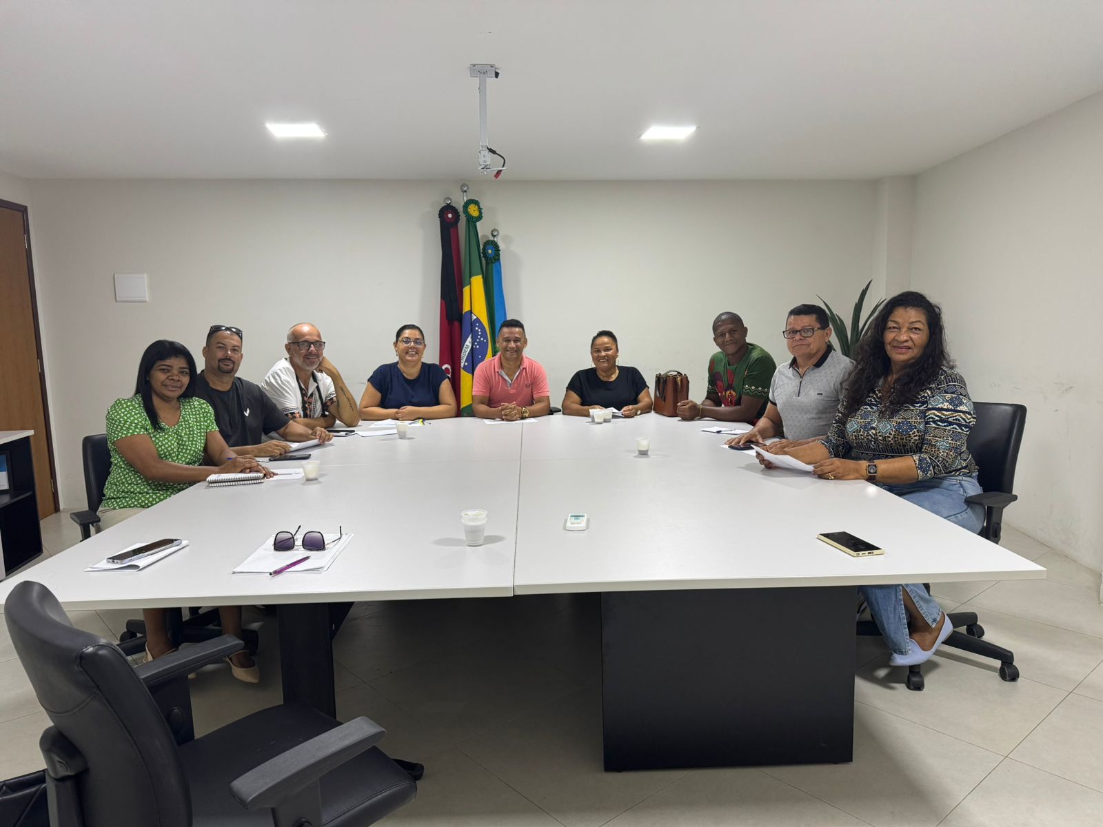 O encontro contou com a presença do Gerente da Diversidade Humana, da Assessora da Prefeita, do Chefe de Gabinete, da Coordenadora de Cultura, além de representantes das Associações Quilombolas de Gurugi e Mituaçu e do Coordenador do Núcleo de Jacumã.