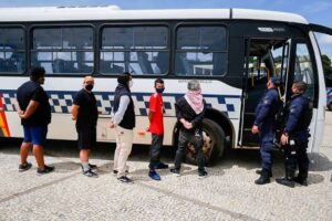 Em nota, a PM afirmou que o grupo foi detido “por infringir a Lei de Segurança Nacional ao divulgar a cruz suástica associando o símbolo ao presidente da República”.
