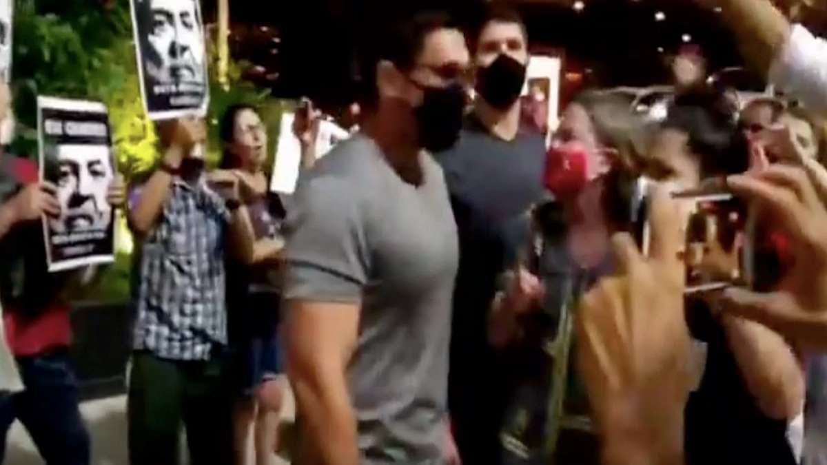Ao deixaram o local, um grupo de pessoas abordou os políticos com cartazes e gritos de “fora!”. Exaltados e em menor número, o trio bateu-boca com os críticos, mas deixou o local às pressas.