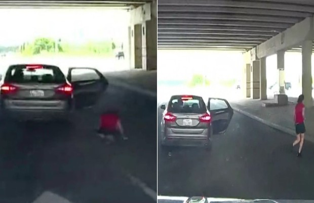Nas imagens é possível ver a jovem abrindo a porta do passageiro para chamar a atenção. Michael Shackelford passava pelo local no exato momento em que ela reagia a atitude violenta do homem. Ele acabou acionando a câmera instalada no interior de seu carro que registrou toda a ação.
